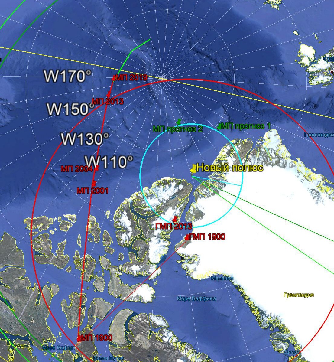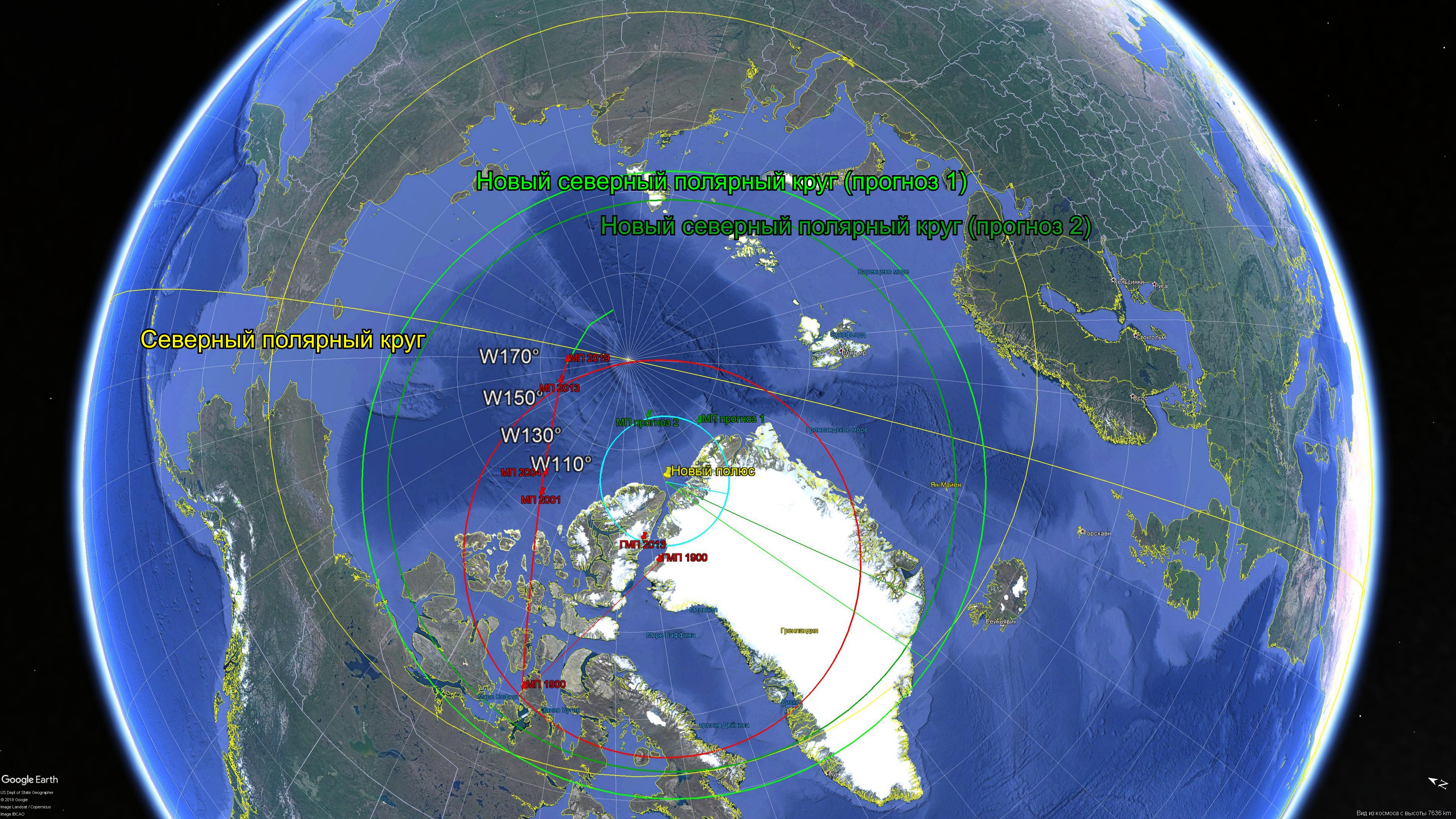 - X0*, Новый полюс – точка «нового» Северного полюса.