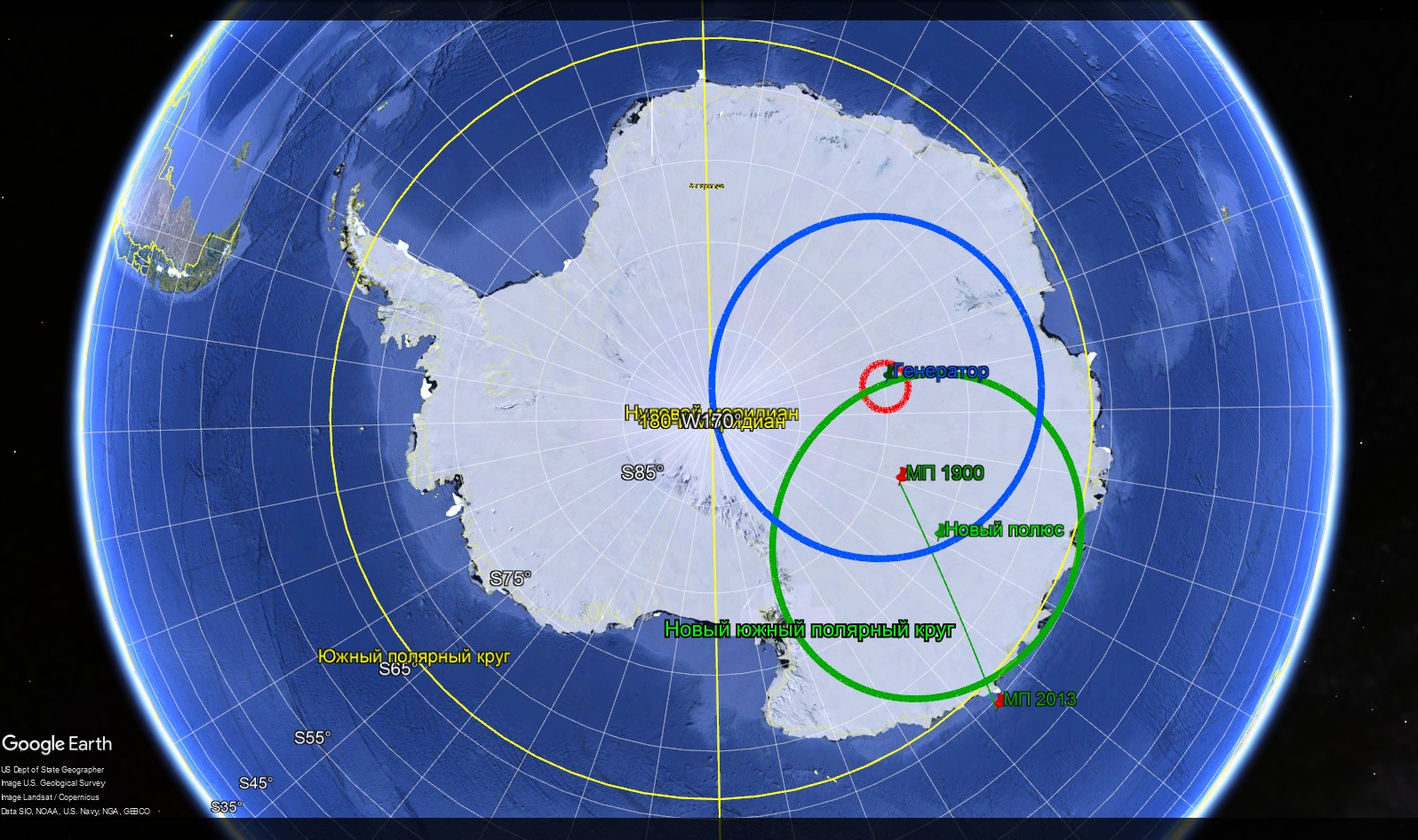 - X1* - «Новый» Южный полюс. Совместно образуют ось “X” ортогональной системы геофизических координат – ось вращения планеты.