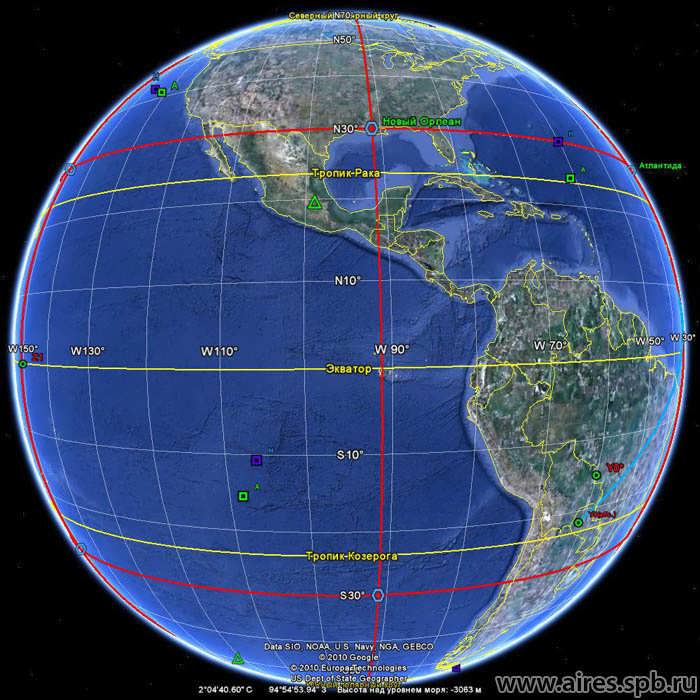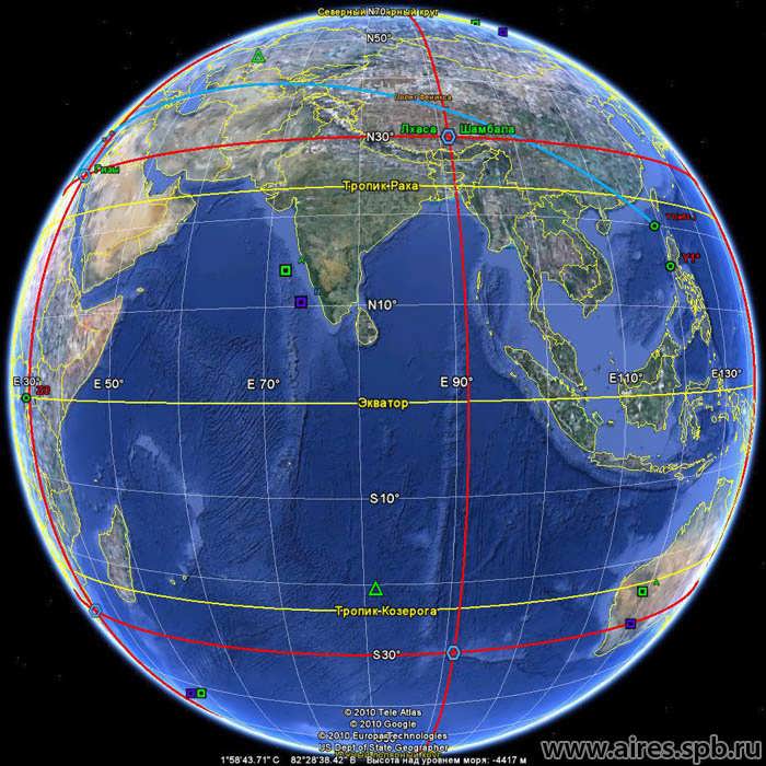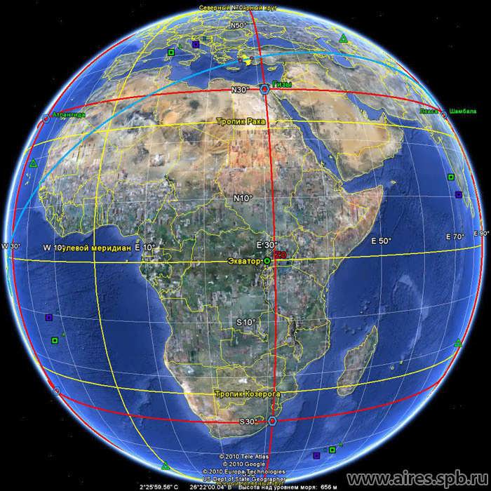 - Пирамида в Гизе, Египет. Ключевая точка сетки. Расстояние от современного северного полюса до пирамиды составляет 6 666,66 км.