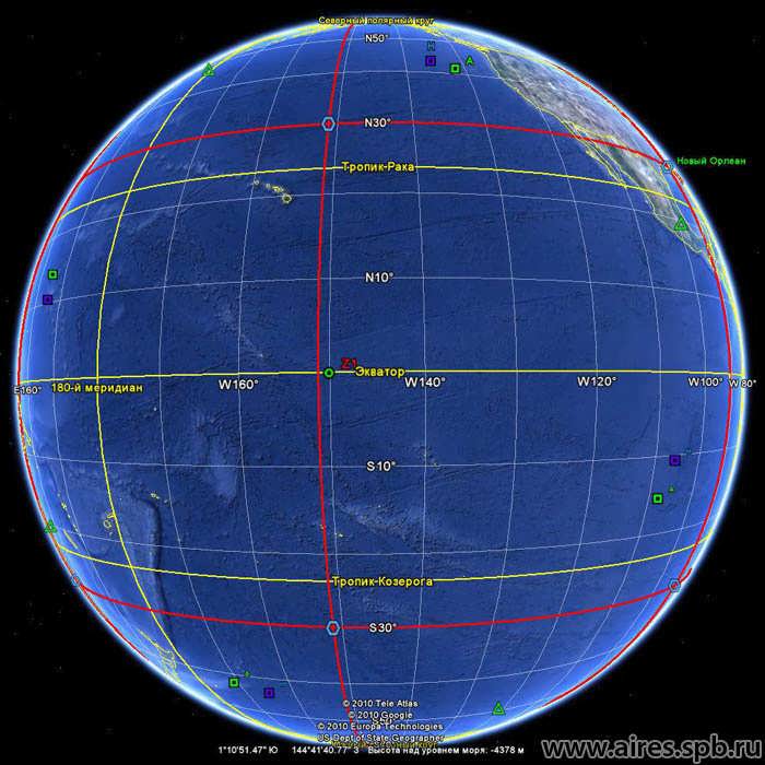 - Точка гексагональной сетки, Тихий океан, плавучая платформа с пирамидой.